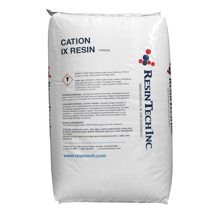 ResinTech CG8 is a premium grade, high capacity, gelular, sulfonated, polystyrene cation resin supplied in the sodium or hydrogen form as moist, tough, uniform, spherical beads. ResinTech CG8 is intended for use in all water softening, dealkalization, deionization and chemical processing applications. Features & Benefits:
